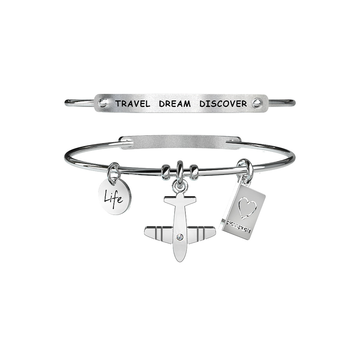 Bracciale Kidult in Acciaio da Donna Collezione Free Time con frase: In volo sulle ali dell'entusiasmo, ogni timbro sul passaporto è una bandierina sulla mappa della vita. La meta non importa, quello che conta è il viaggio!