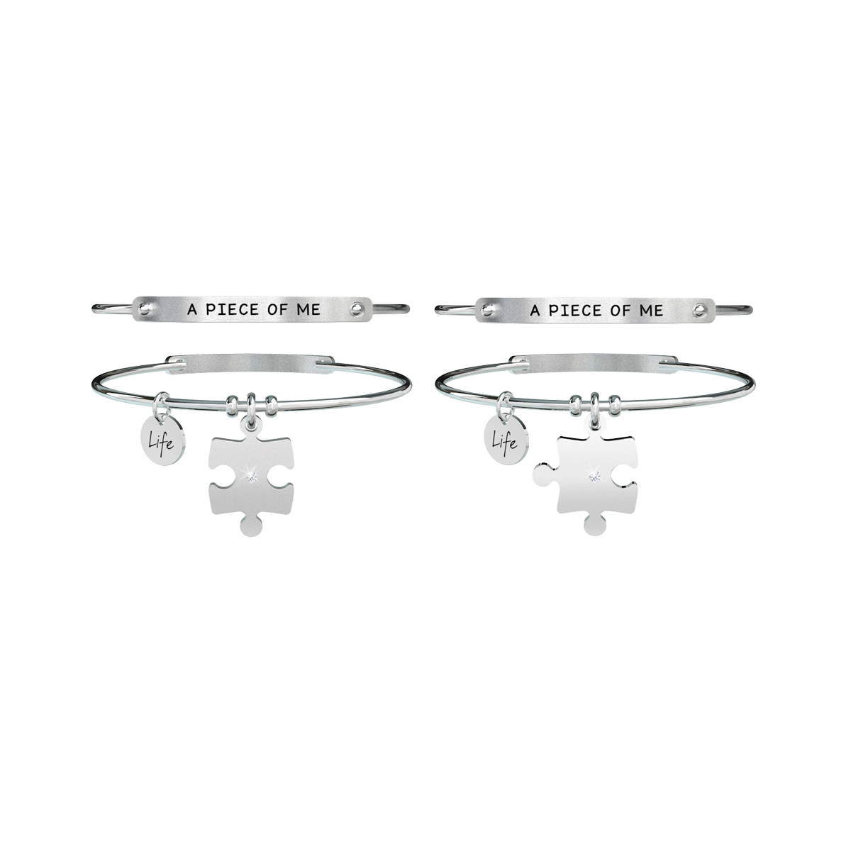 Bracciale Kidult in Acciaio da Donna Collezione Love con frase: In un puzzle da un milione di pezzi, siamo due tasselli che si legano insieme. Noi due unite, vicine, diverse ma complementari. Un incastro perfetto!