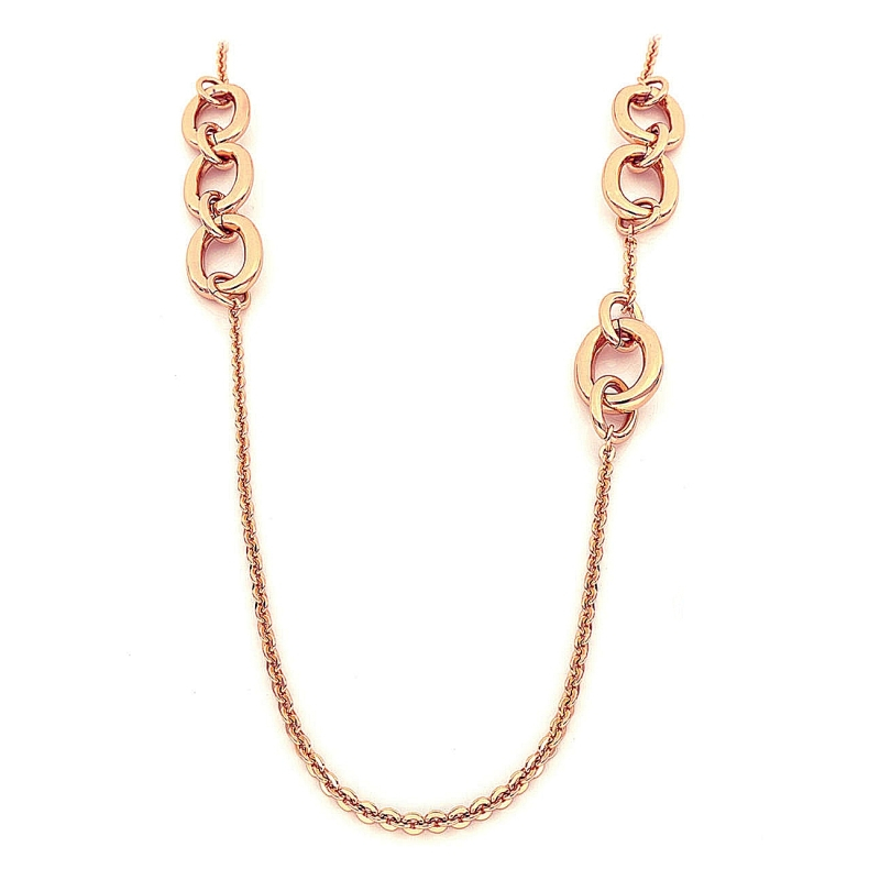 Collana lunga "laccio", catena forzatina piccola con elementi grandi.