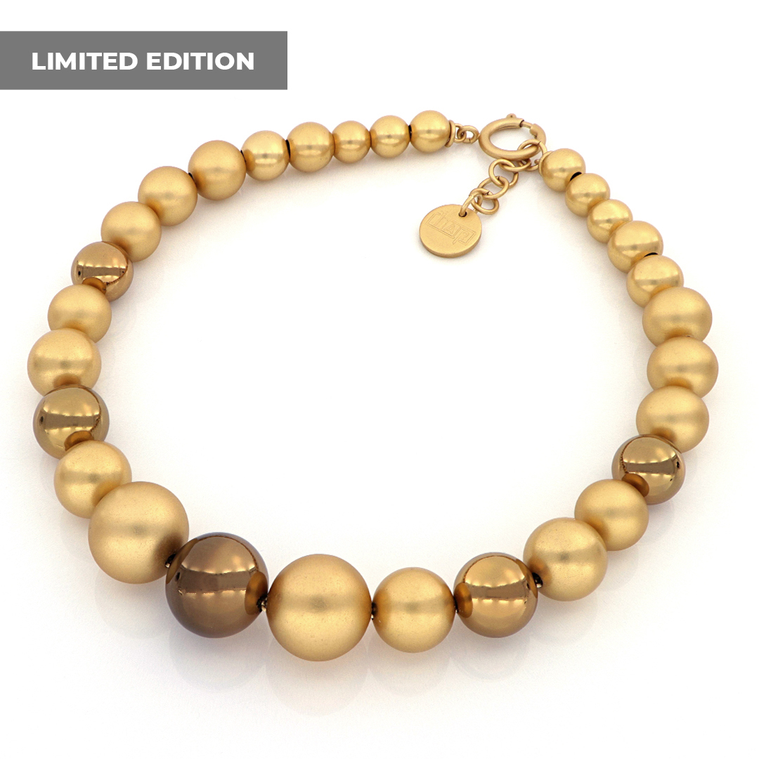 Collana sfere bronzo lucido oro seta