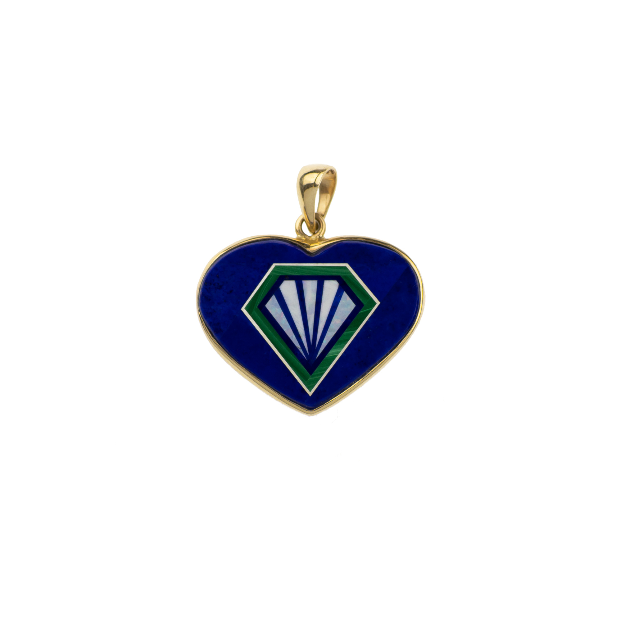 Ciondolo pendente oro giallo a cuore realizzato in lapis, opale e malachite
