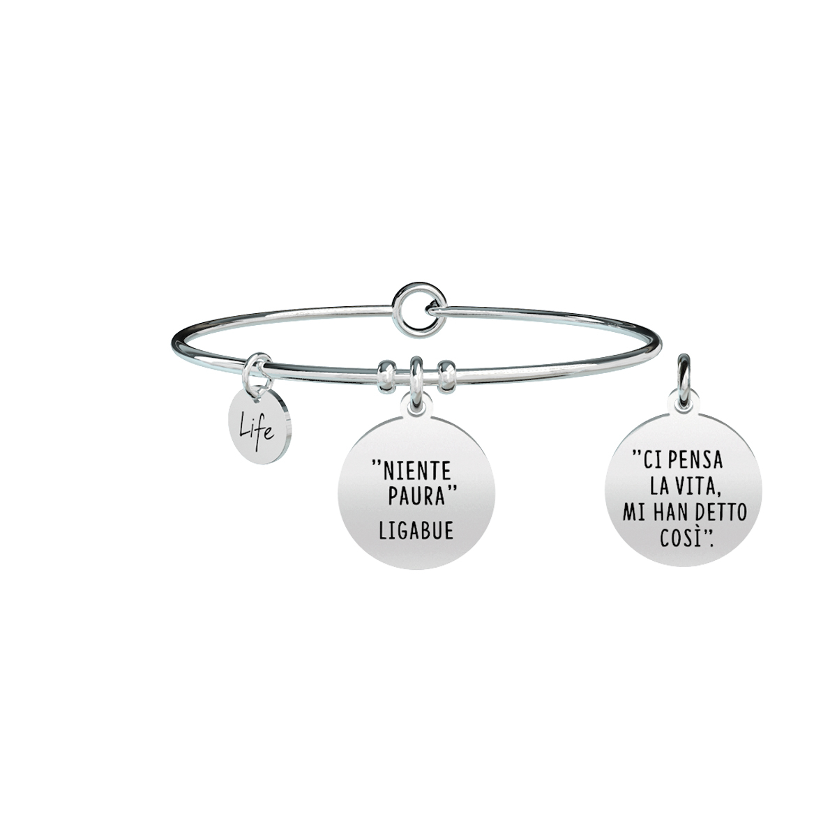 Bracciale Kidult in Acciaio da Donna Collezione Philosophy con frase: "Niente paura, ci pensa la vita, mi han detto così".Ligabue