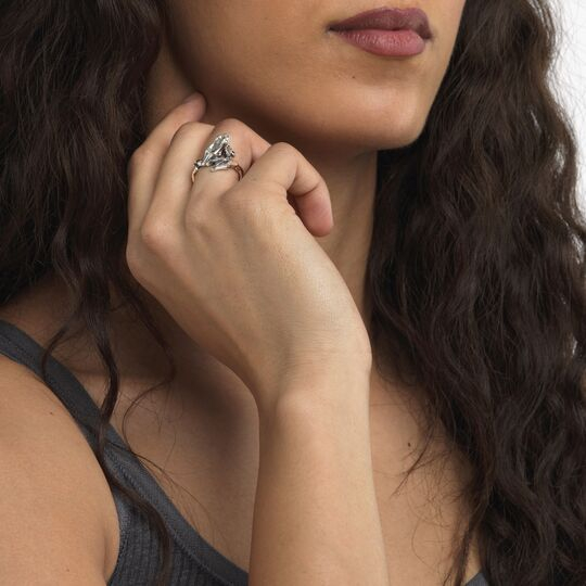 La raganella è un tipo raro di rana. Simbolo della fertilitá è in grado di proteggere dall’invidia. Su quest’anello una piccola raganella curiosa va alla scoperta del mondo.