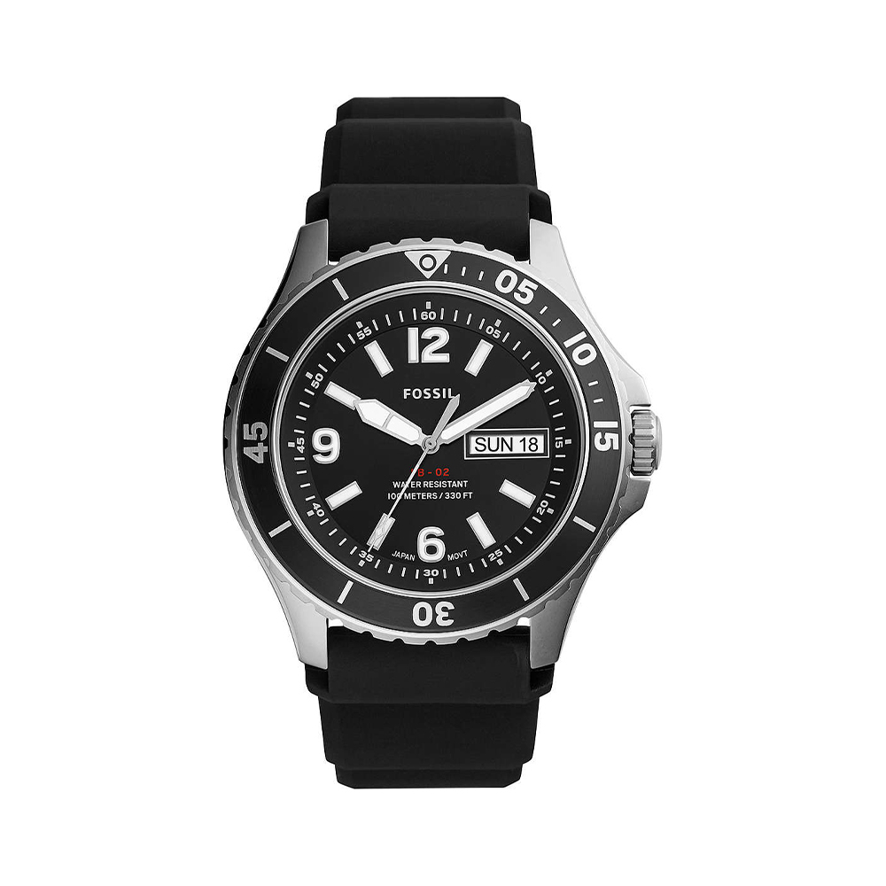 Orologio in acciaio Solo Tempo da uomo di Fossil, Collezione FB - 02, cinturino in silicone nero e diametro cassa 48mm.
