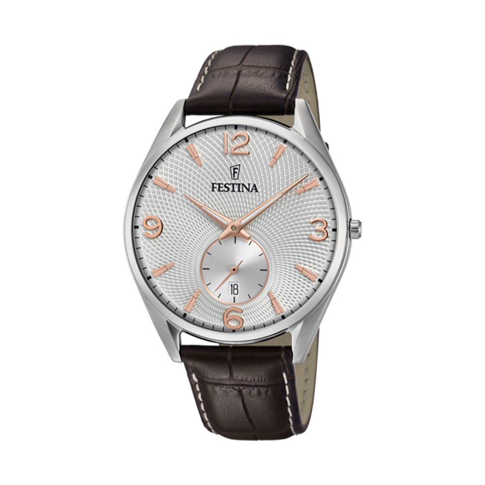 Orologio Festina da uomo della Collezione Retro. Con cassa in acciaio inox da 41mm e vetro minerale, completato da un cinturino in pelle.