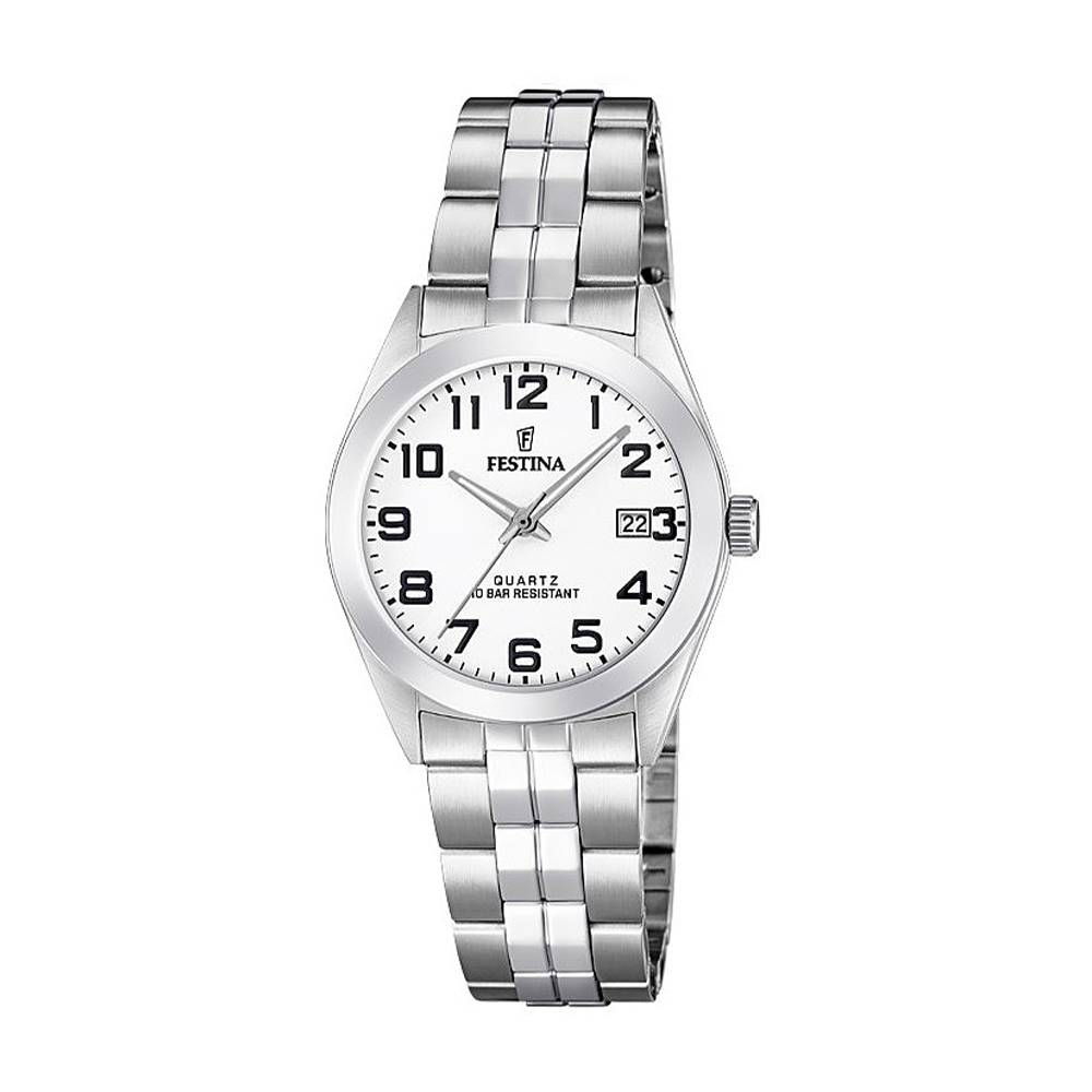 Orologio Festina da donna f20438/1 della Collezione Acciaio Classico. Con cassa in acciaio inox del diametro di 28mm e vetro minerale, completato da un bracciale in acciaio inox.