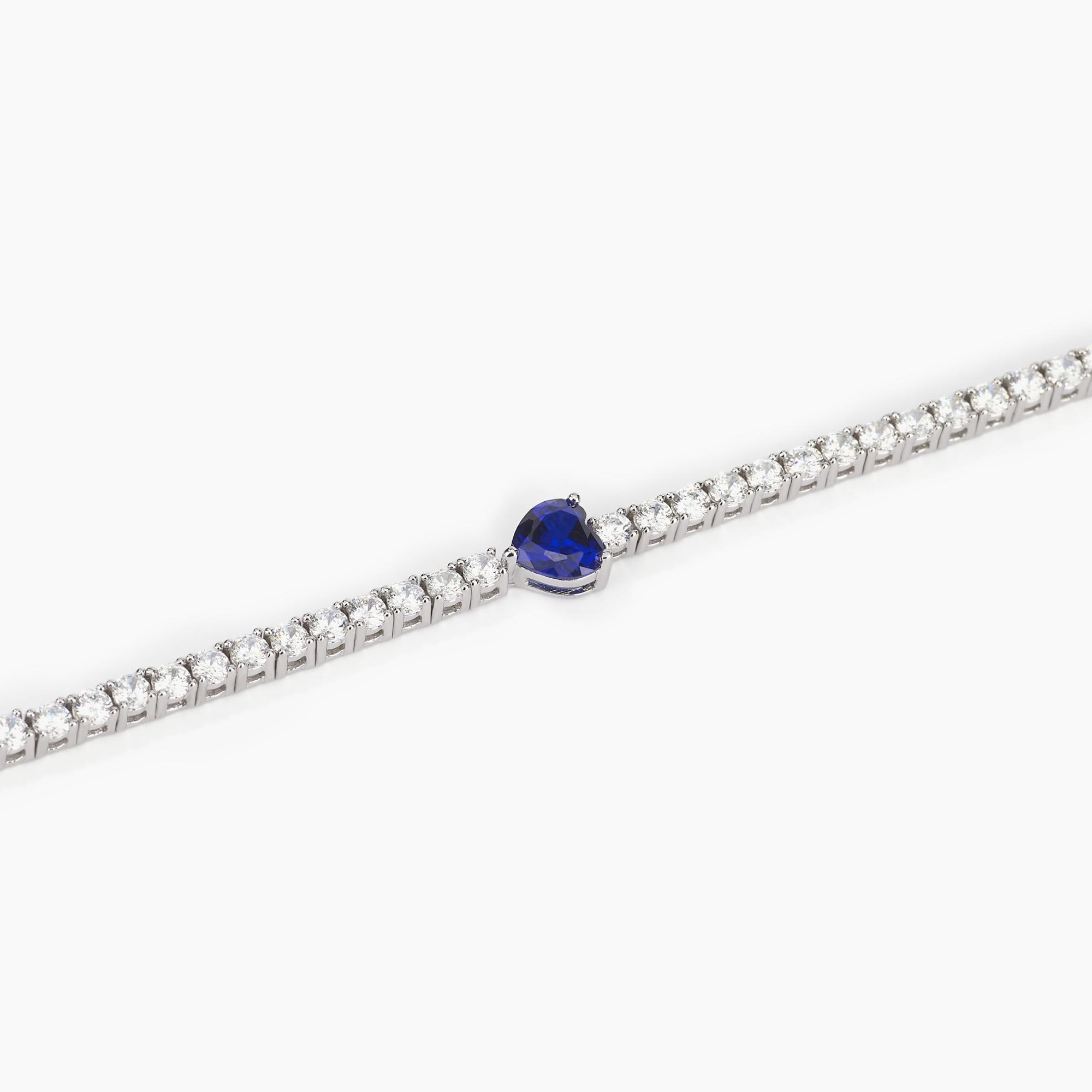 Bracciale Tennis In Argento Con Zirconi E Cuore In Zaffiro Sintetico.