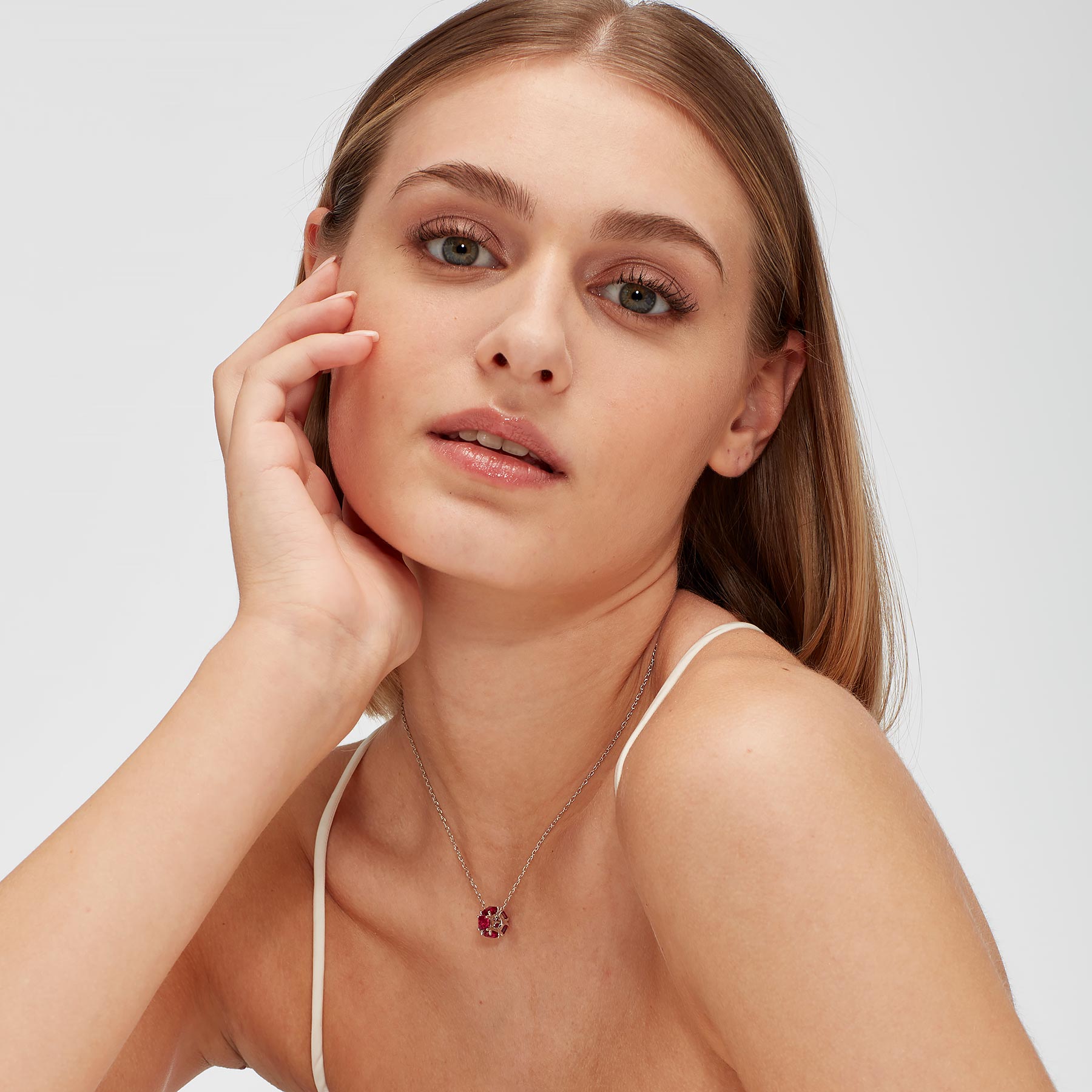 Color Charm In Argento Rodiato 925‰ Con Cushion Cubic Zirconia Colore Ruby.