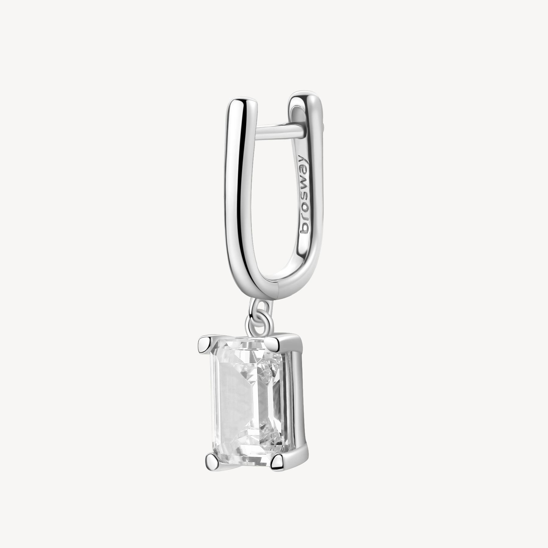 Orecchino Singolo Pendente In Argento Rodiato 925‰ Con Baguette Cubic Zirconia.
