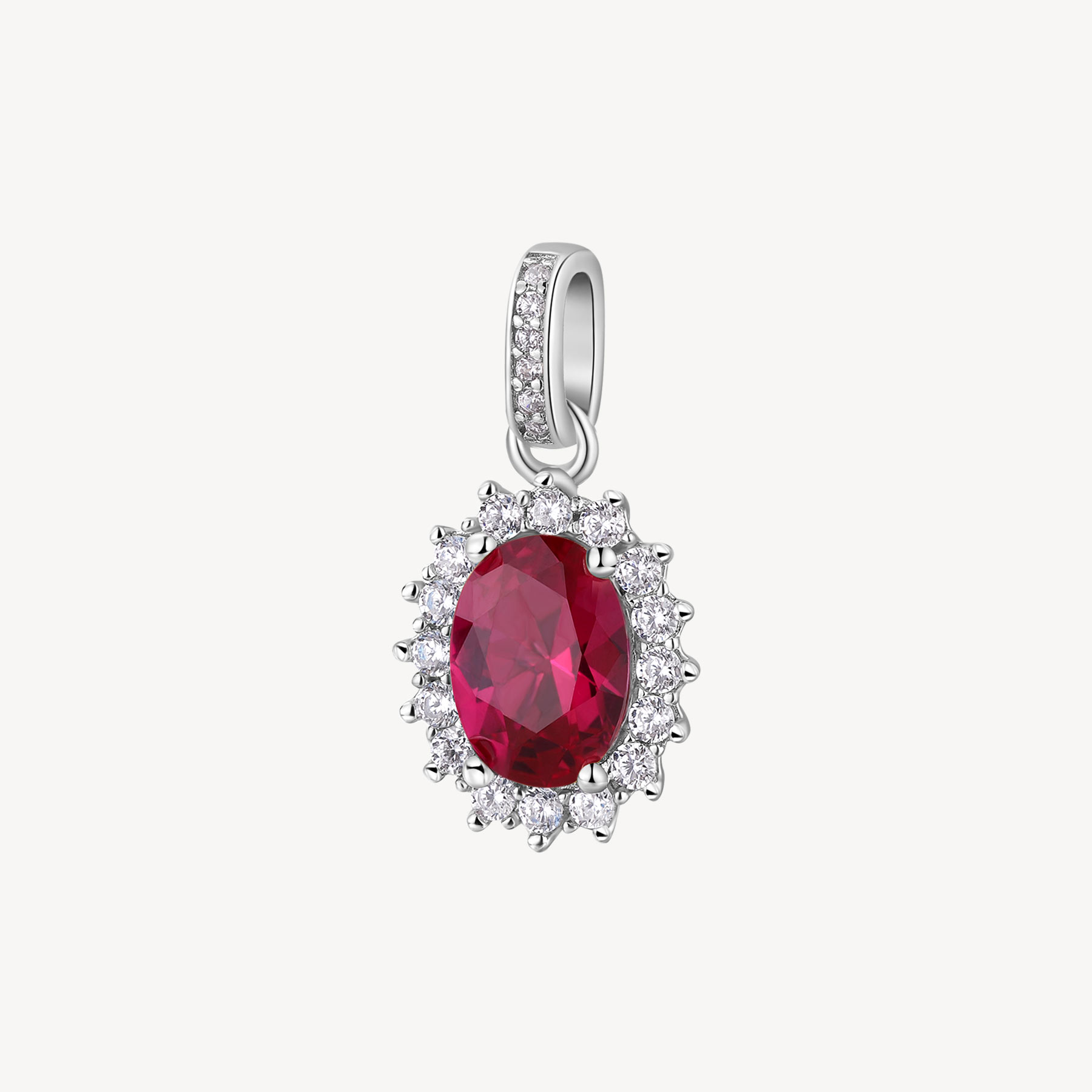 Pendente Kate in argento rodiato 925‰ con cubic zirconia chiari e oval cubic zirconia colore ruby.