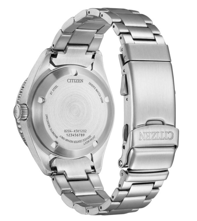 Movimento meccanico. Cassa e bracciale in acciaio. Ghiera girevole unidirezionale. Fondello e corona a vista. Vetro minerale con trattamento antiriflesso. Diametro cassa 41 mm. WR 20 bar.