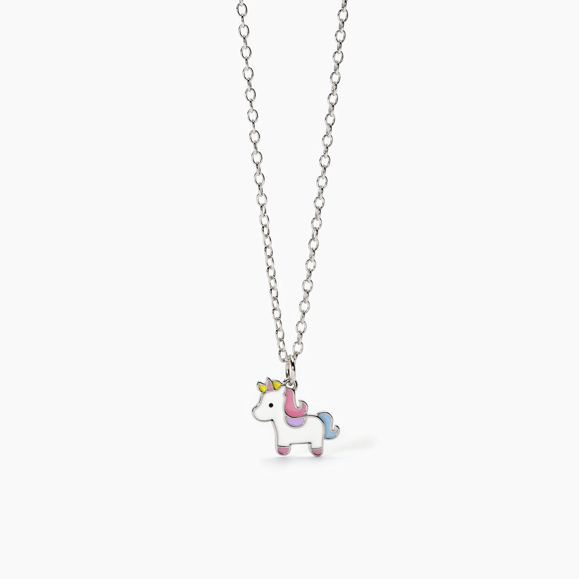 Girocollo bimba regolabile in argento rodiato con catena forzatina e ciondolo unicorno smaltato.