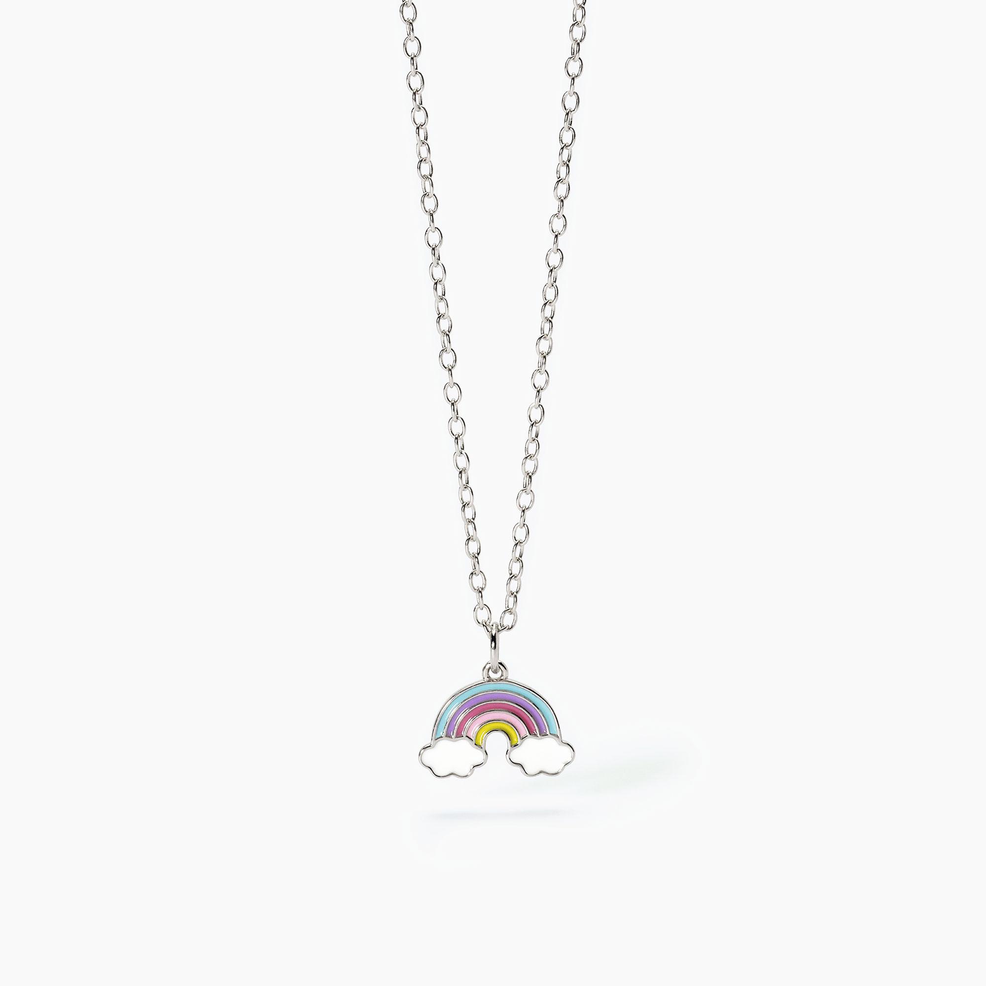 Girocollo bimba regolabile in argento rodiato con catena forzatina e ciondolo arcobaleno smaltato.