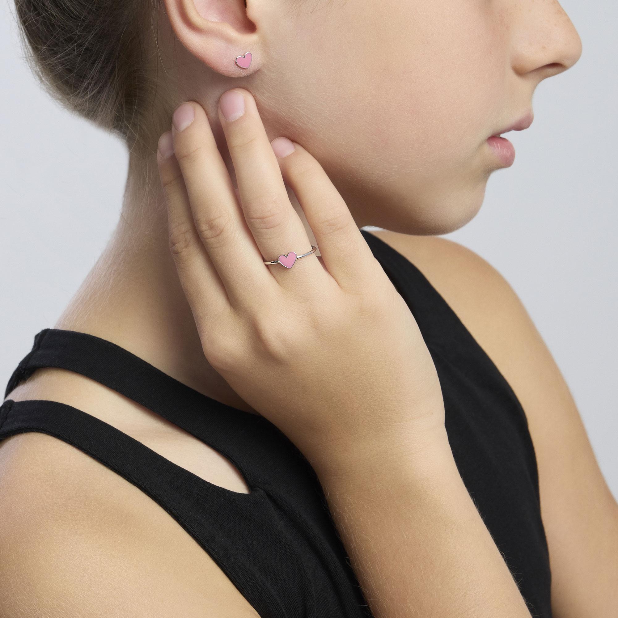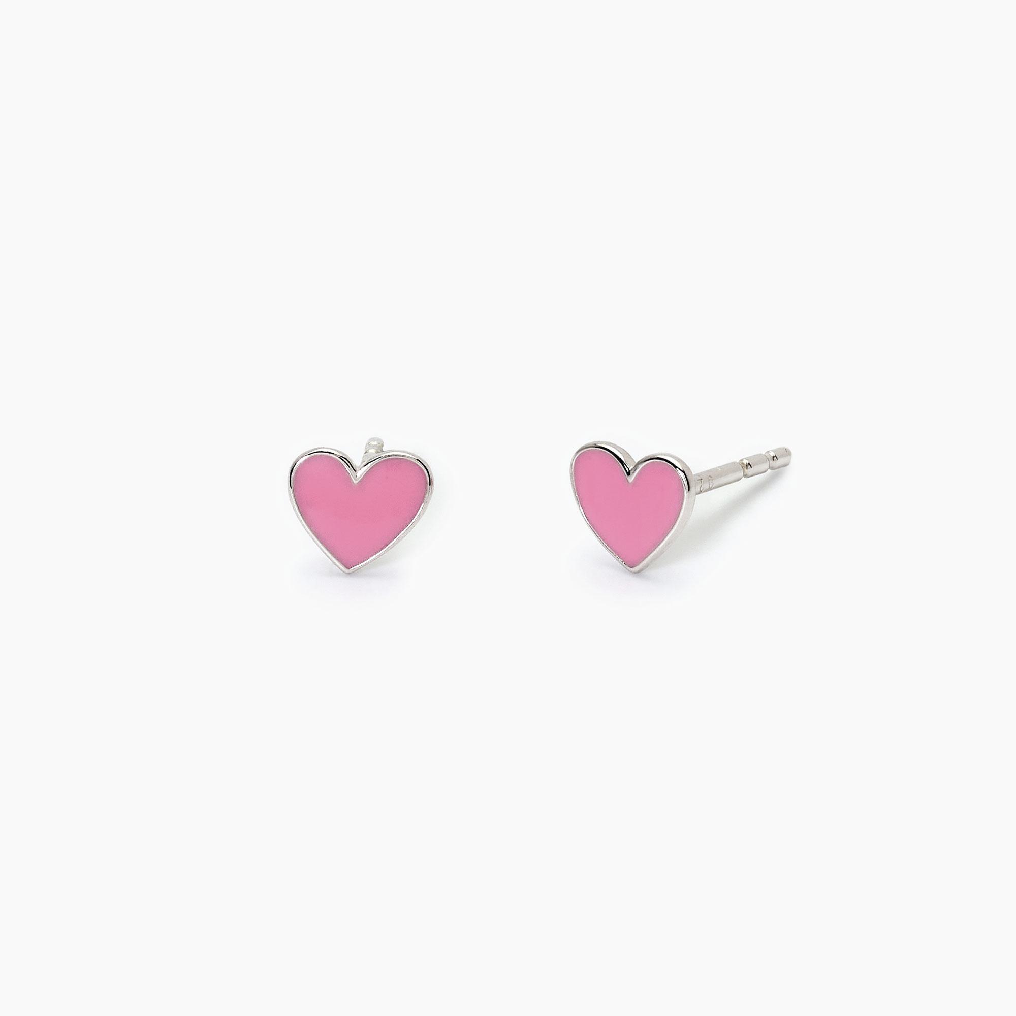 Orecchini bimba a lobo in argento rodiato con cuoricino smaltato.