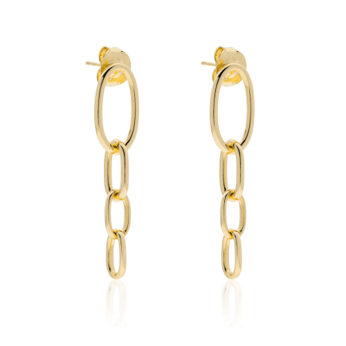 Orecchini pendenti catena forzatina ovale e bagno in oro. Lunghezza 4,50 cm. Grazie alla sua sorprendente versatilità, la catena è la principale fonte d'ispirazione delle creazioni firmate Unoaerre. Questi orecchini dalla linea affusolata e leggera sono l'accessorio perfetto per esaltare ogni tuo outfit. Scopri i gioielli coordinati e crea il tuo stile.