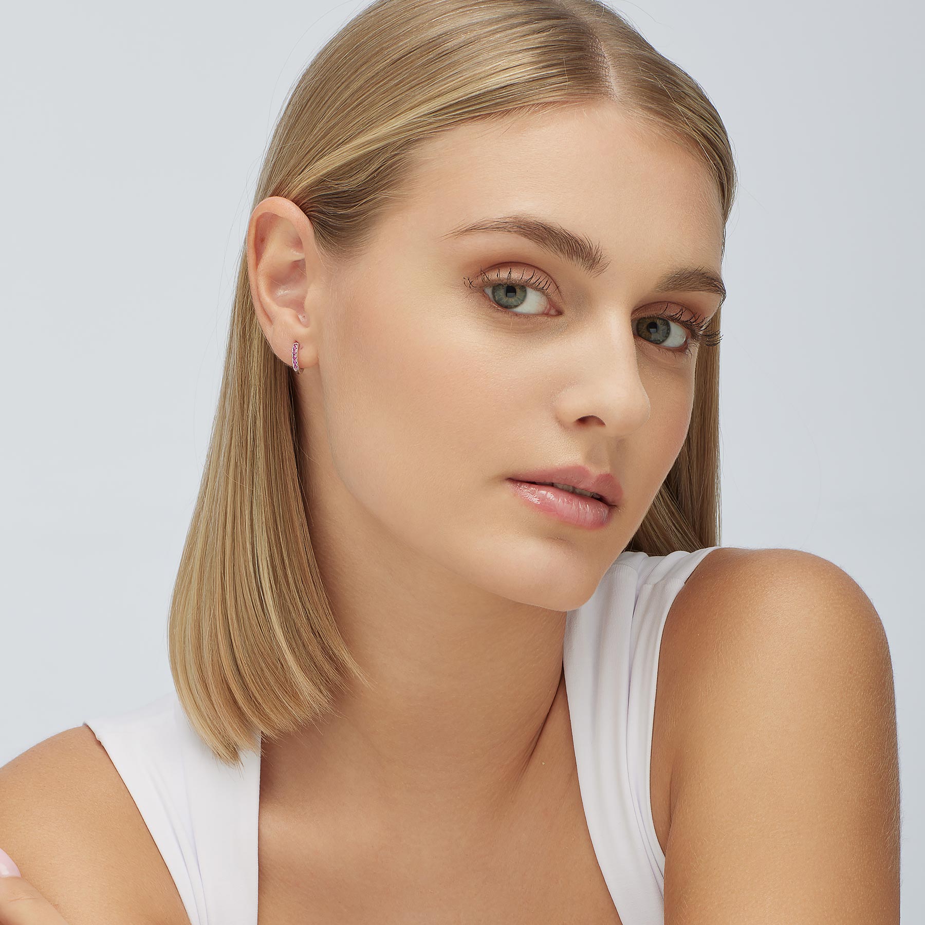 Orecchino Singolo A Cerchietto In Argento Rodiato 925‰ Con Cubic Zirconia Colore Ruby.
